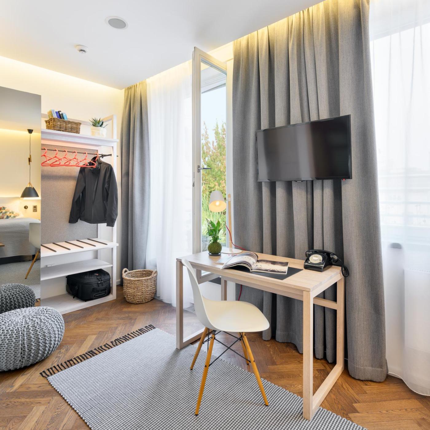 Superior Double or Twin Room with Terrace. A spacious and comfortable room located on the fifth and sixth floor, featuring a terrace, private bathroom and a view. ;
