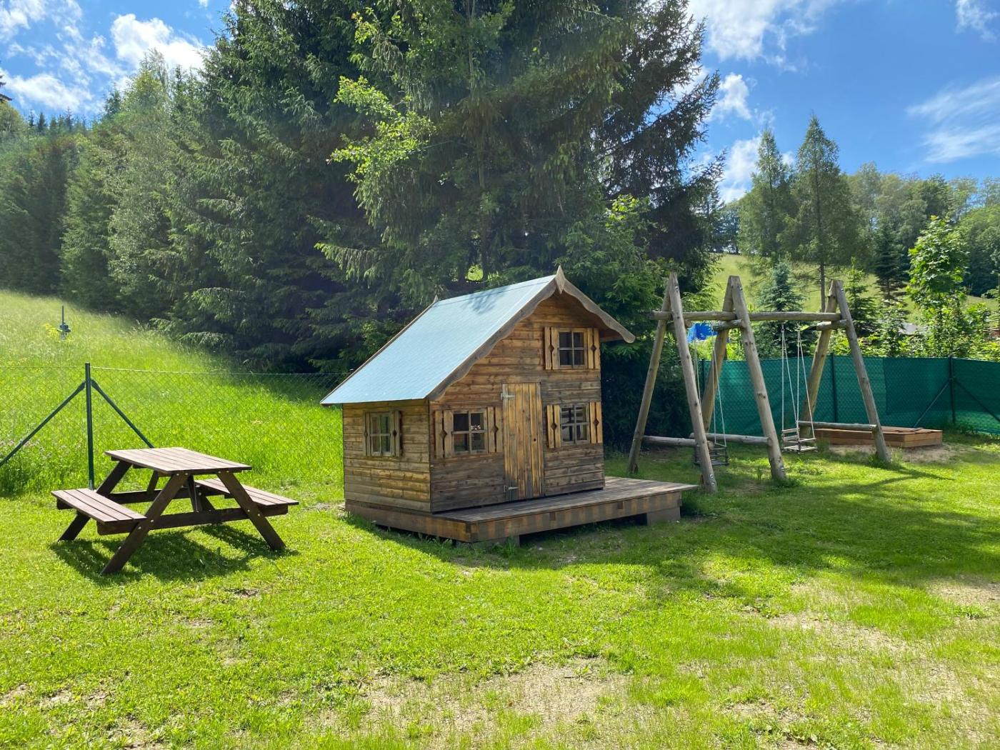 For guests with children, the apartment provides outdoor play equipment. Skiing and cycling can be enjoyed nearby, while ski-to-door access and ski storage space are also available on-site.