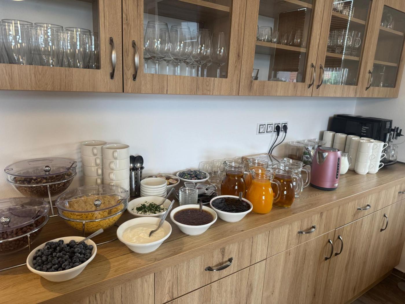 A selection of options including fresh pastries, fruits and cheese is available for the continental breakfast.